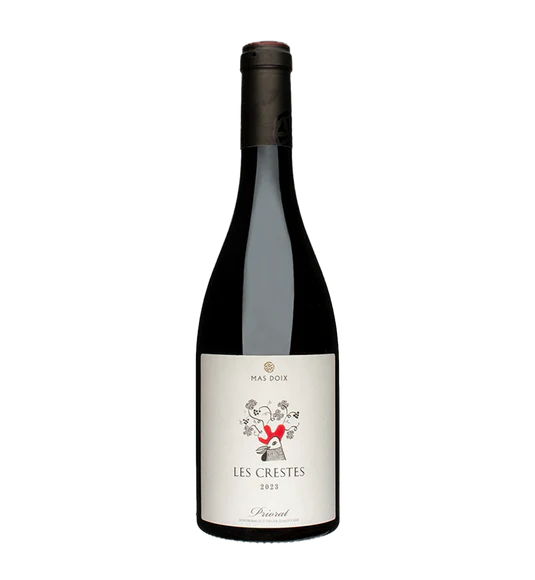 Les Crestes 2023 er Mas Doix’ elegante indgang til Priorat – frisk, frugtintens og terroirtro. Vinen domineres af Garnacha med Carignan og lidt Syrah fra unge stokke på stejle llicorella-jorde ved Poboleda og lagres 8–10 måneder på franske fade med minimal ny eg.